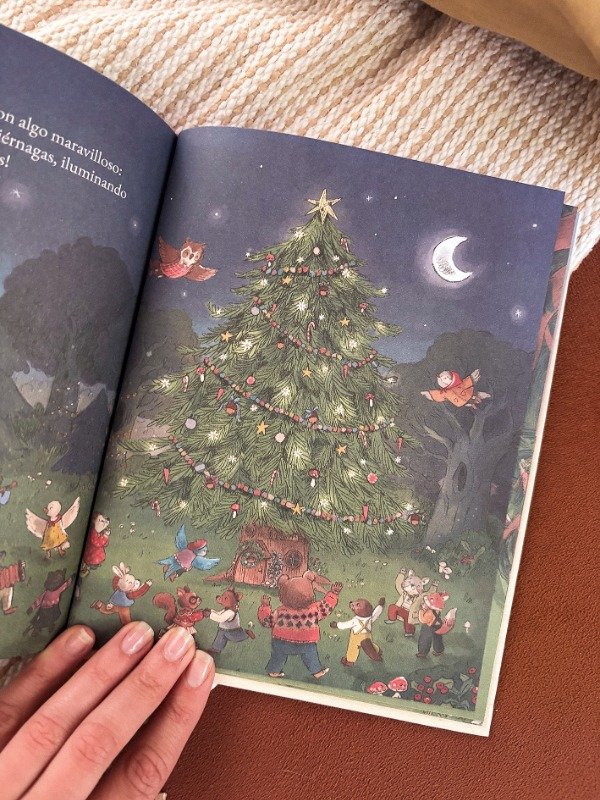 El árbol espera sus adornos, los regalos se acomodan bajo el árbol y la luna ya brilla entre las ramas.